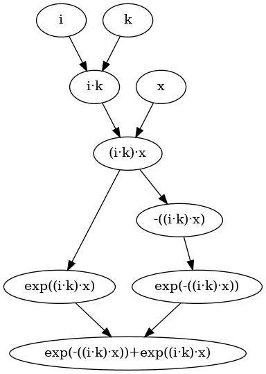 >>>import Debug.SimpleExpr (variable, unaryFunc)>>>import Debug.SimpleExpr.GraphUtils (plotExpr, plotDGraphPng, exprToGraph)>>>import NumHask (exp, (*), (+), (-))